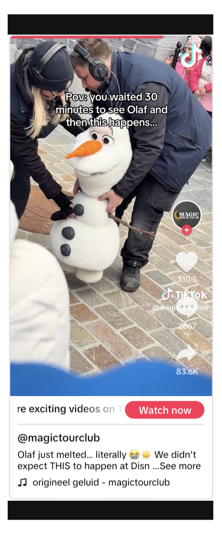 In case you missed it… A video of an animatronic Olaf in Disneyland Paris losing power and falling over has gone viral.