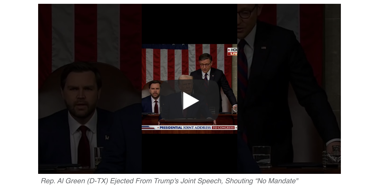 Minutes into Trump’s address, Rep. Al Green (D-TX) was escorted out of the House Chamber for heckling the president. After Trump touted his election win in all seven battleground states, Green yelled that Trump has “no mandate.”