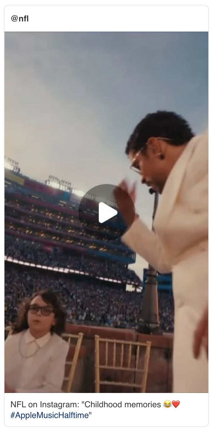 Visual notes: From sugar cane fields (symbolizing colonialism and slavery in the Caribbean) to the electric poles (representing Puerto Rico’s fragile power grid and frequent outages), Bad Bunny didn’t shy away from political messaging. Still, there were no explicit anti-ICE calls like the one he made at the Grammys. His overarching message centered on unity: “Together, we are America,” read a football he held.
