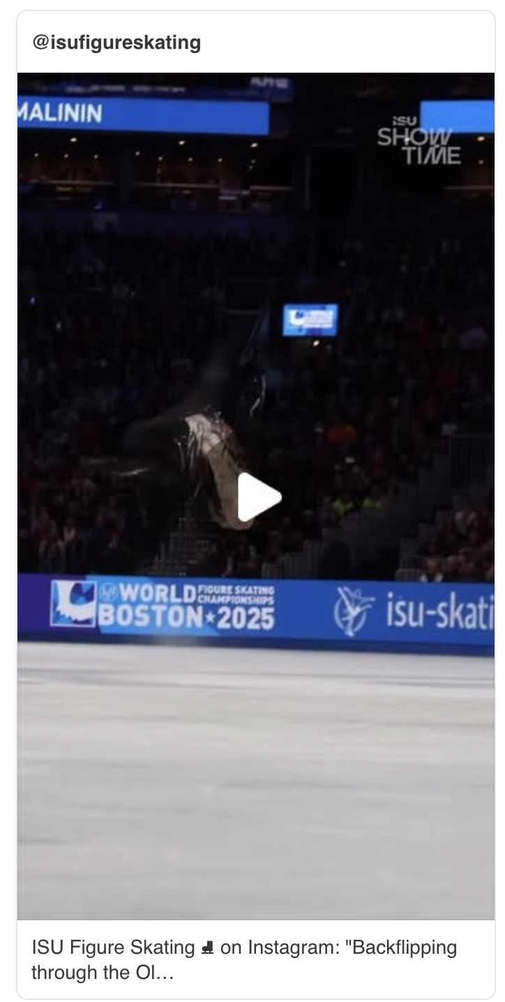 The Atlantic notes, “To fully appreciate how revolutionary Malinin is, consider some fundamental physics and biomechanics. The gold-medal-determining long program, also known as the ‘free skate,’ lasts for four and a half minutes. Roughly 30 seconds in, Malinin’s heart rate rises to 90 percent of its capacity, about 180 beats a minute, and stays there for the duration. The effort is comparable to that sustained by the world’s fastest milers.”