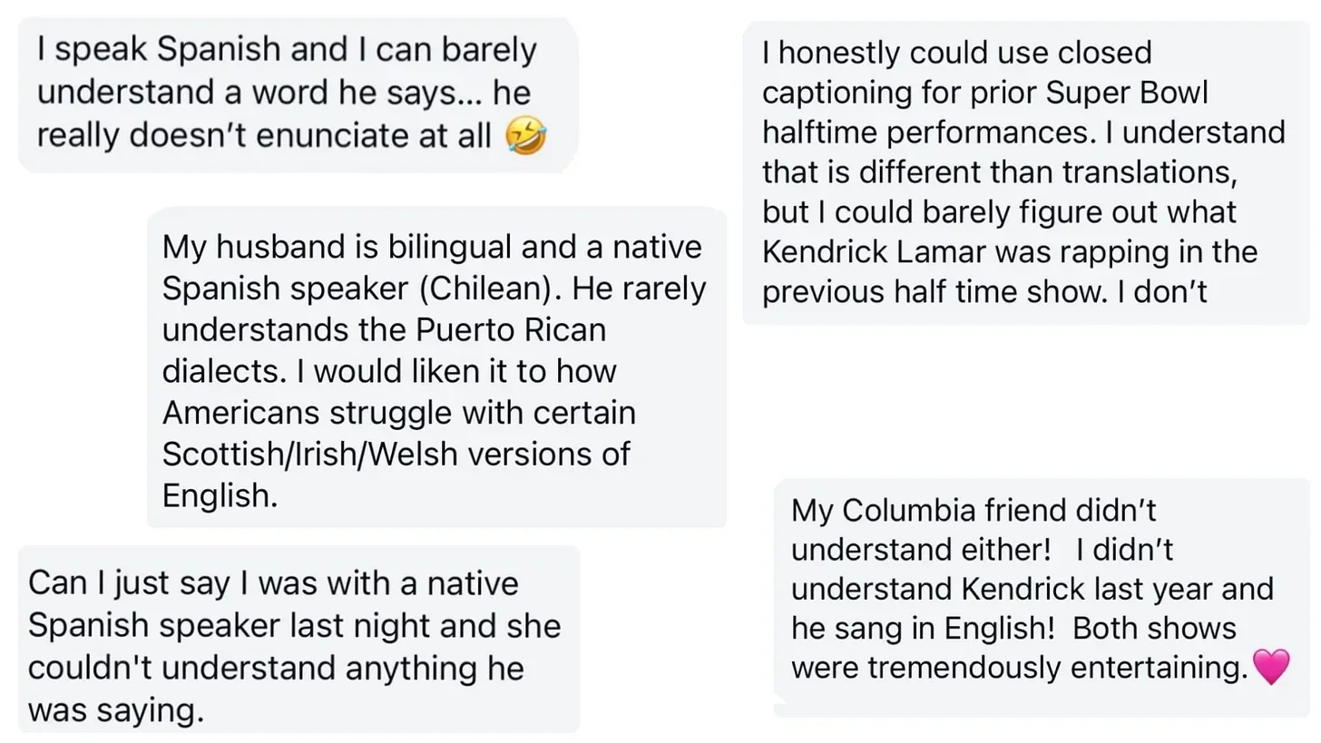 If you don’t speak Spanish, and couldn’t understand him, you are not alone. Some native Spanish speakers told us they also had trouble understanding Bad Bunny’s unique Puerto Rican accent/dialect.