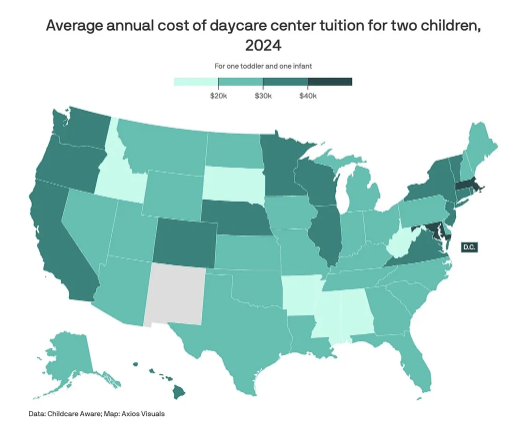Researchers also blame the rising cost of child care, which rose by nearly 30% between 2020 and 2024 — outpacing inflation, according to the nonprofit Child Care Aware of America.