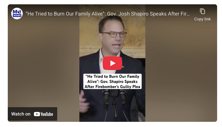 “He Tried to Burn Our Family Alive”: Gov. Shapiro Speaks After Firebomber’s Guilty Plea