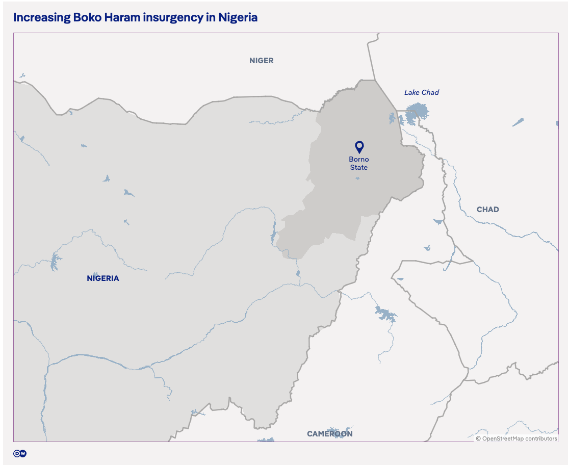 A map of the northeast border of Nigeria, where Boko Haram is primarily located. (Via DW)