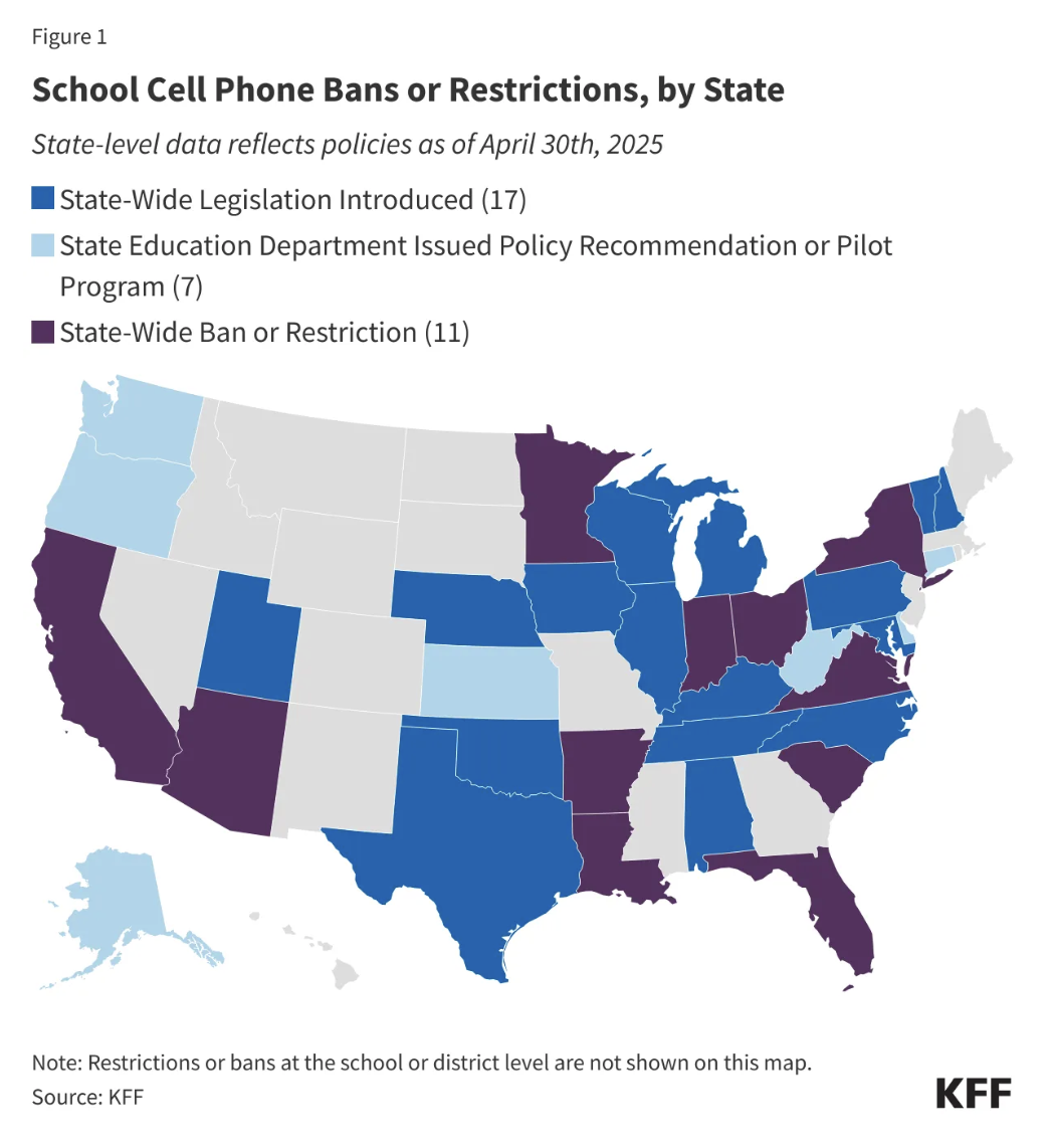 Phone bans are spreading fast. At least 20 states ban phones during the school day. A new RAND Corp. survey found that two-thirds of principals at K–12 schools said their school had a bell-to-bell phone ban.