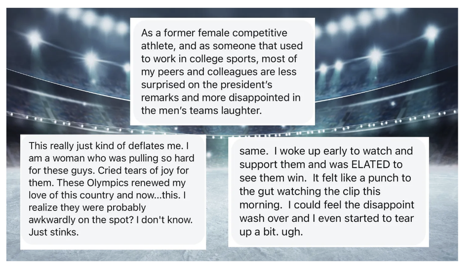 The Mo News community had thoughts about whether it was appropriate for the U.S. men’s hockey team to laugh at the president’s joke. 🏒⬇️