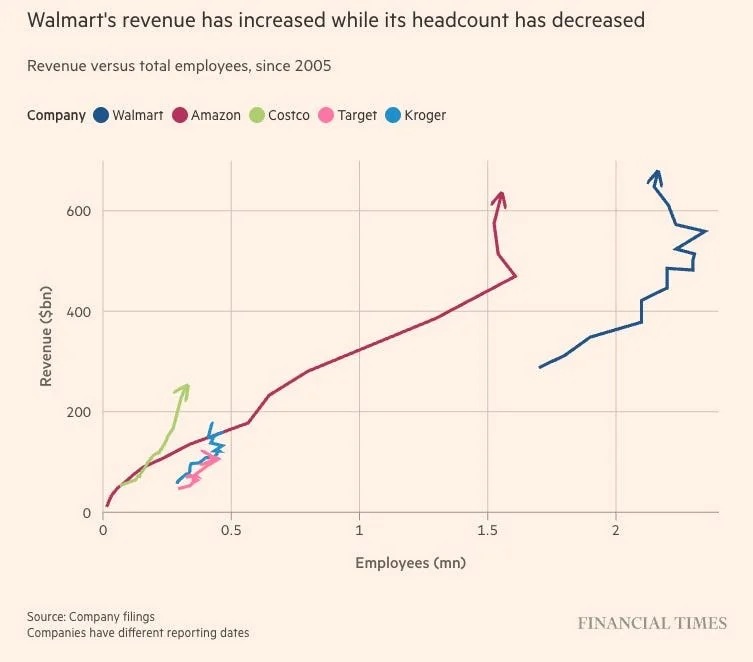 It comes as the company’s aims to grow sales by 4% annually without significantly increasing its U.S. workforce — a trend toward e-commerce and automation that raises questions about the future of retail labor, which employs 1 in 10 American workers.