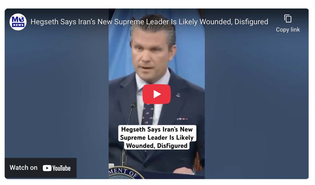 During the same briefing, Hegseth said “the United States is decimating the radical Iranian regime’s military” and that the Iranian regime’s new supreme leader, Mojtaba Khamenei, is likely wounded and disfigured.