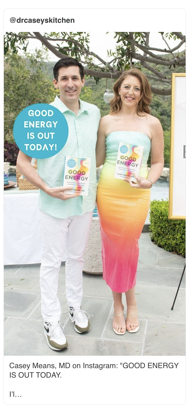 Dr. Means is a wellness influencer and entrepreneur. She and her brother, Calley Means, wrote a 2024 book about healthy eating and metabolic health that is widely considered to be the foundational text of the Make America Healthy Again movement.