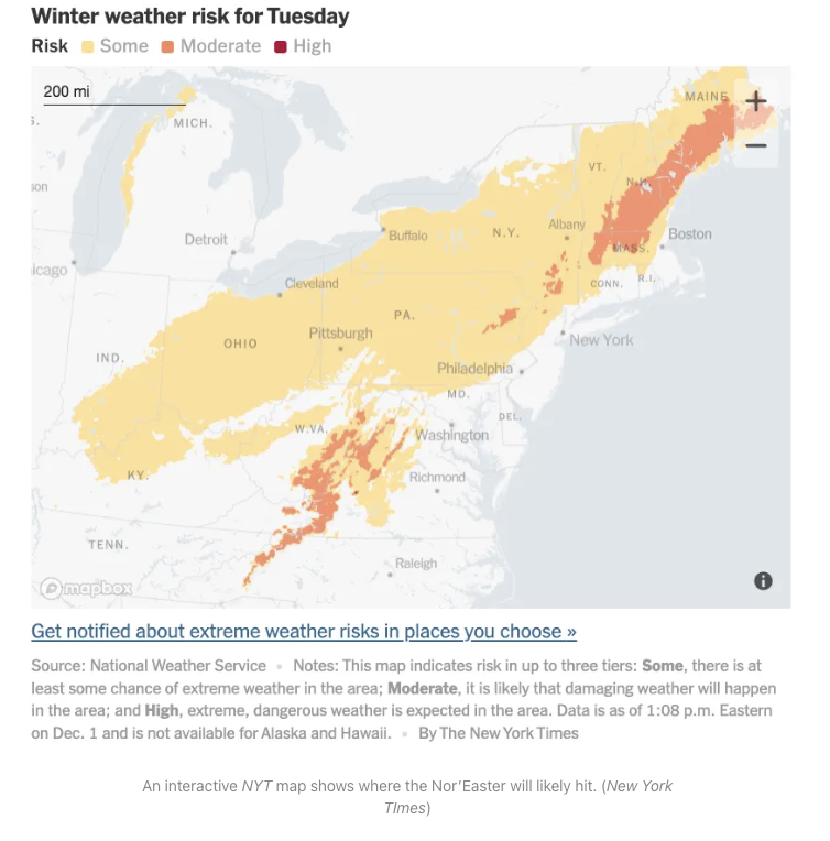 In case you missed it… A heavy snowstorm known as a Nor’easter is expected to cover much of the Northeast U.S. starting Monday night.