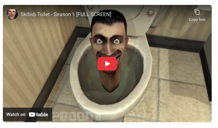 The gibberish term became popular from the video "Skibidi Toilet” above ⬆️ — a viral animated video series that began on YouTube featuring human heads popping out from toilets and urinals.