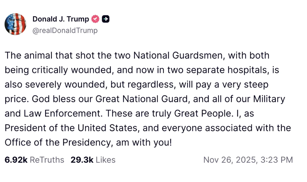 More than 2,000 National Guard troops — from D.C. as well as West Virginia, Alabama, Louisiana, Mississippi, Ohio, South Carolina, and Georgia — have been deployed across the nation’s capital since Trump’s mobilization order in August. They’ve been patrolling Metro stations, tourist areas, and even picking up trash. Defense Sec. Pete Hegseth responded to the shooting, saying the administration will add 500 more troops to D.C. streets.
