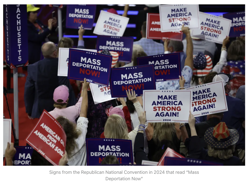 It’s a stark change from President Trump’s 2024 campaign message, where signs at the Republican National Convention read “Mass Deportation Now.” Trump had campaigned on launching the largest deportation program in U.S. history.