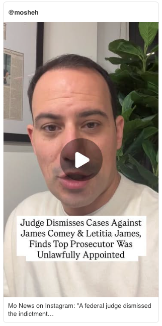 A federal judge dismissed the indictments against former FBI Director James Comey and New York Attorney General Letitia James Monday, ruling that interim U.S. Attorney Lindsey Halligan in Virginia — who prosecuted the cases — was unlawfully appointed to the role.