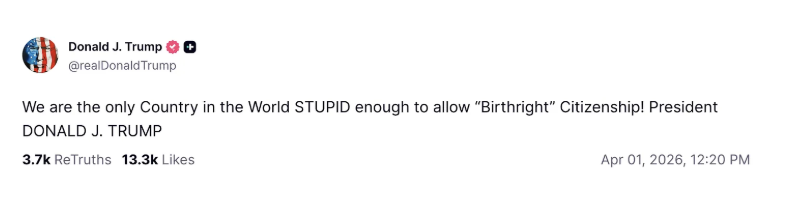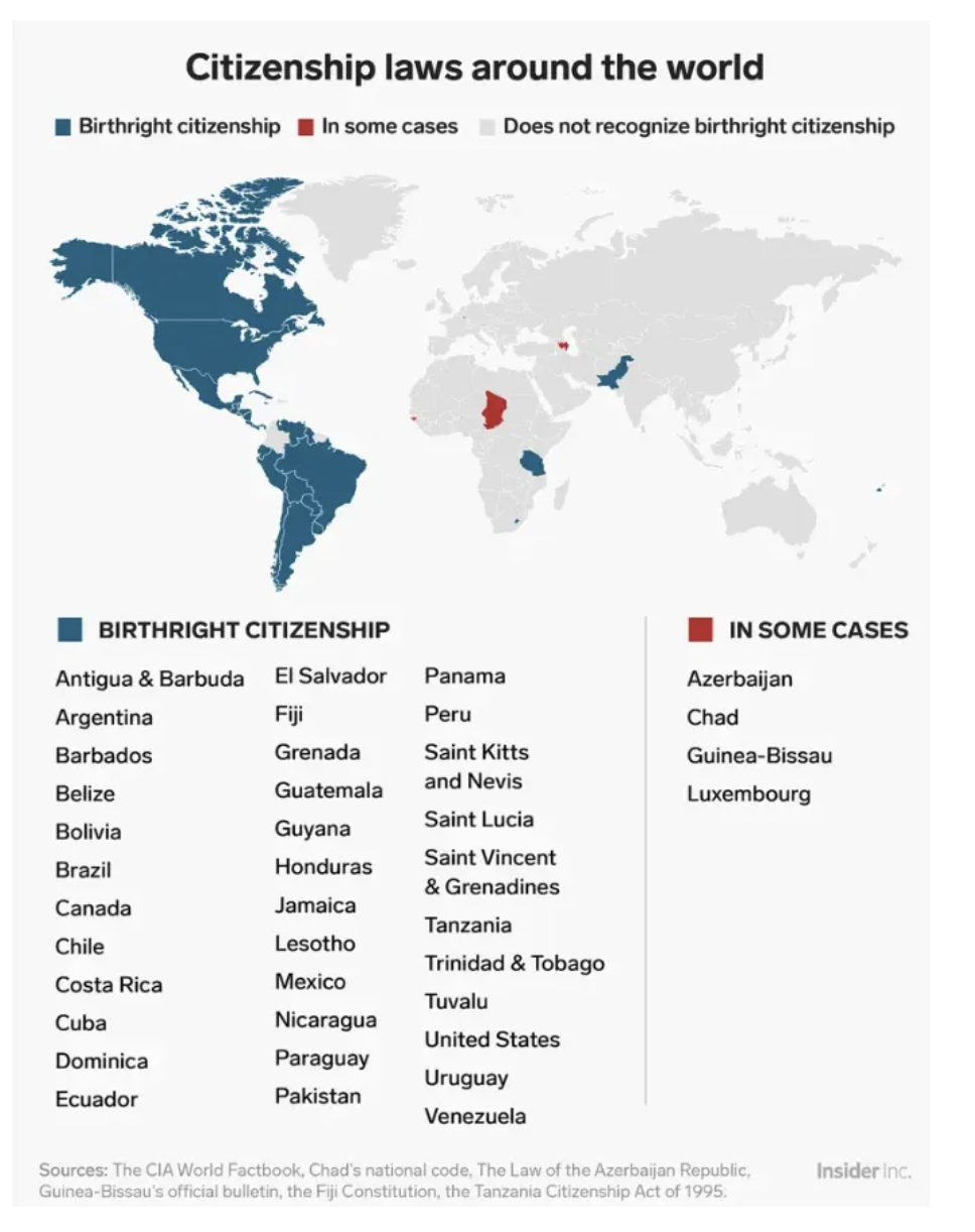 The U.S. is only one of about three dozen countries with unrestricted birthright citizenship.